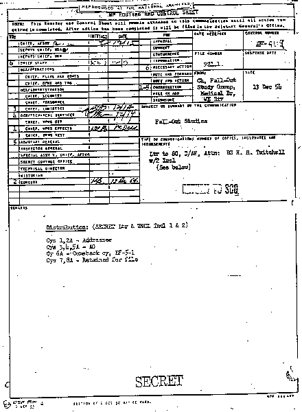 - 12/16/54: Memo. from the Chief of the AFSWP re: Animal Sampling