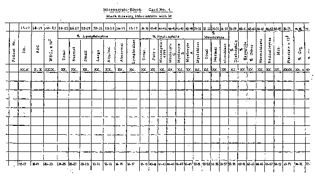 - 2bb005: DASA 1960 Supplement, Pg. 47(Table: Microscopic Blood Card No. 4)