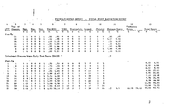 - 2bb009: DASA 1960 Supplement, Pg. 62(Table: Profile Score Sheet-Total Body Radiation Study)