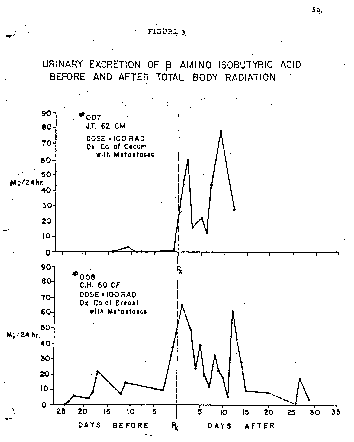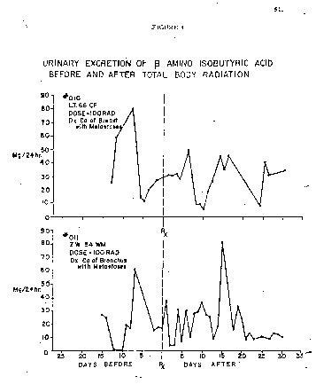 - 2bb010: DASA 1960 Supplement(Fig. 3: Urinary Excretion of B Amino Isobutyric Acid Before and After Total Body Radiation)