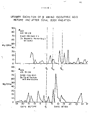 - 2bb012: DASA 1960 Supplement(Fig. 5: Urinary Excretion of B Amino Isobutyric Acid Before and After Total Body Radiation)