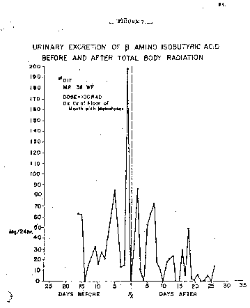 - 2bb014: DASA 1960 Supplement(Fig. 7: Urinary Excretion of B Amino Isobutyric Acid Before and After Total Body Radiation)