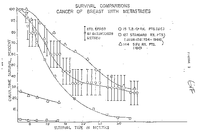 - 2bb016: Whole Body Radiation Study at the Univ. of Cincinnati, Report By: The Ad Hoc Review Committee(Fig. 2: Survival Comparisons Cancer of Breast With Metastates)